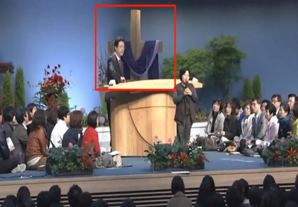 예배당의 중심에 있는 십자가는 오직 그리스도의 구속을 선포해야 한다. 그 위에 마리아를 상징하는 휘장을 얹는다는 것은, 비록 의도하지 않았다 해도, 교회가 복음의 정체성을 잃어가고 있다는 침묵의 고백이다. 교회의 강단은 절대로 혼합주의의 상징이 놓여서는 안 된다. 그 자리는 오직 예수 그리스도께만 속한 자리이기 때문이다.